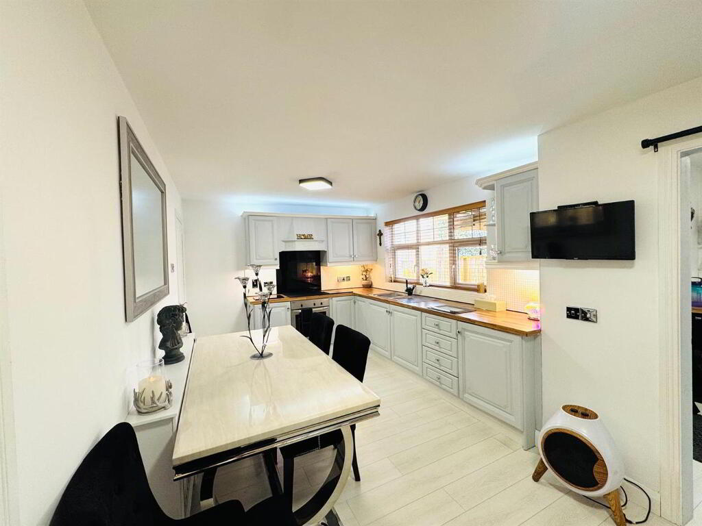 Having excellent range of eye and low level units with concealed lighting under, tiling between units, 1 1/2 bowl stainless steel sink unit with mixer taps, hob, underoven, extractor canopy, integrated fridge, ample dining space, spacious understairs storage, laminated wooden floor.