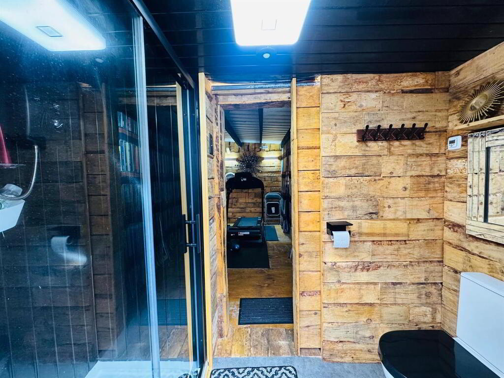 Having entertainment/fitness room Shower room comprising walk in shower, WHb set in vanitory unit and WC.